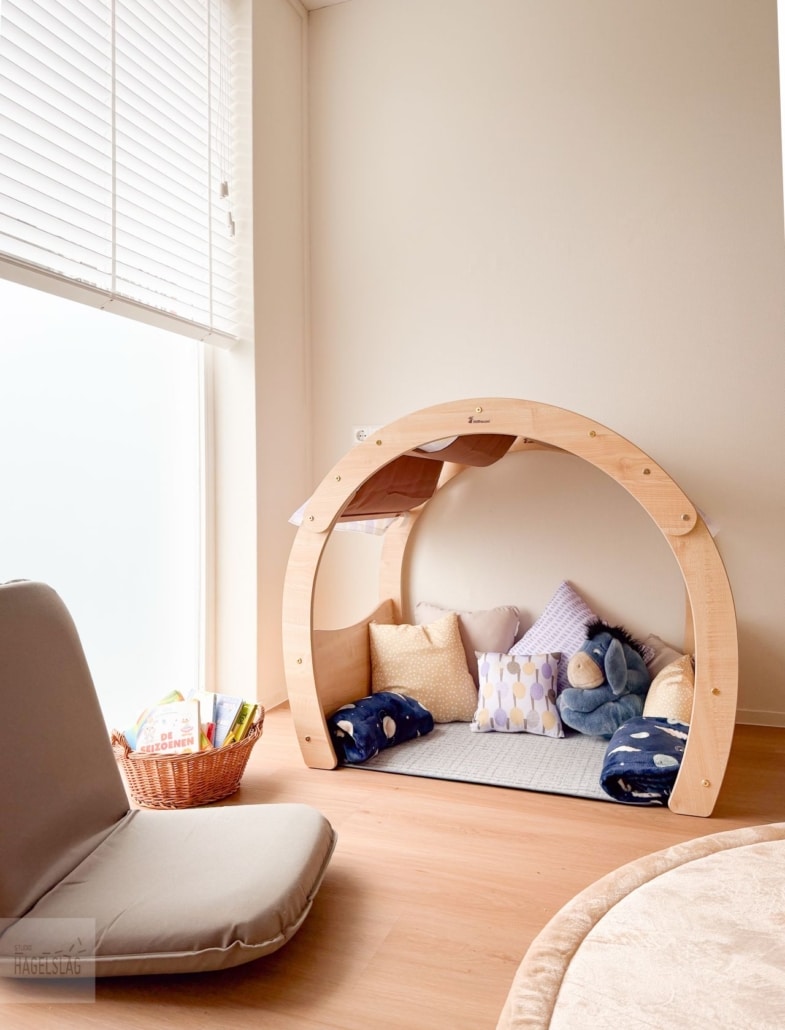 De ruimte is opgebouwd met rustige vloeren, frisse kleuren en flexibel meubilair. Er is bewust gekozen voor duidelijk ingerichte zones die overzicht bieden en kinderen keuzevrijheid geven. Zo is er een geborgen plek voor de allerkleinsten, bewegingsruimte voor dreumesen en een chill en gameplek voor oudere kinderen. Een inrichting die rekening houdt met verschillende leeftijden en behoeften, zonder dat het onrustig of druk aanvoelt.