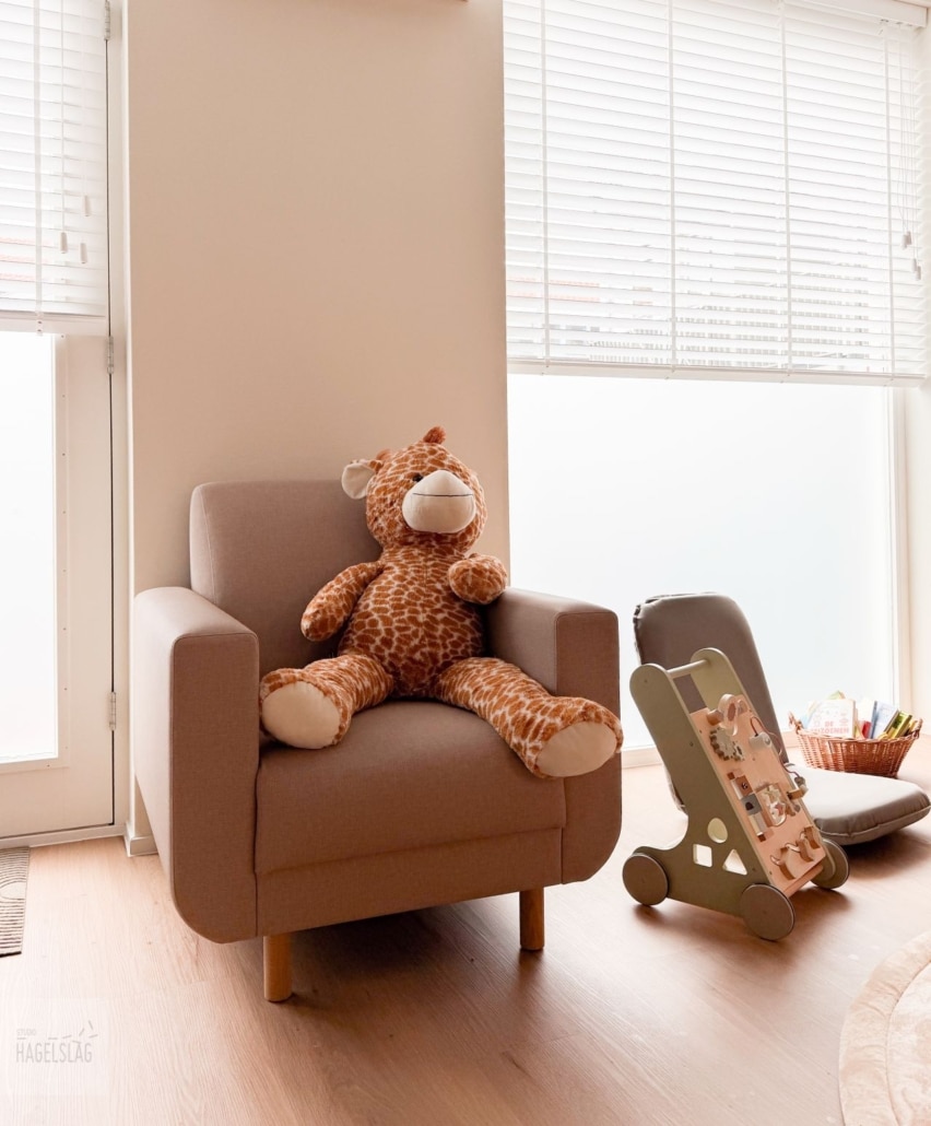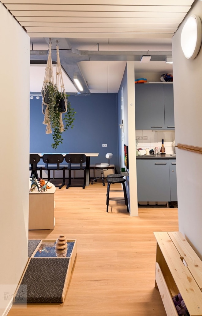 Voor het ontwerp en de inrichting werkte Blijf Groep samen met Studio Hagelslag. Hun uitgangspunt: een veilige omgeving begint bij de ruimte zelf. De kinderwerkruimte in Alkmaar is ingericht als een plek die verder gaat dan tijdelijke opvang. Het is een omgeving waar kinderen zich veilig kunnen voelen, tot rust kunnen komen en ruimte krijgen om zich te ontwikkelen.